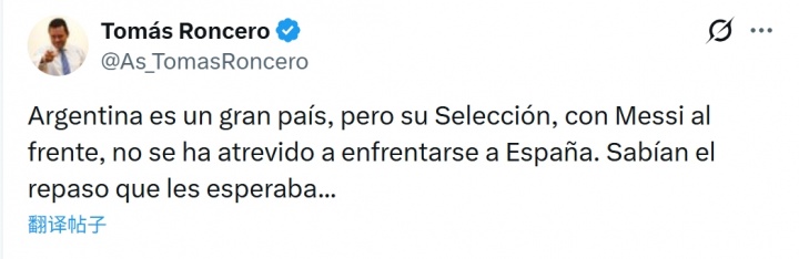世界杯app下载-龙赛罗:梅西领衔的阿根廷不敢与西班牙较量,他们清楚将面临什么 03月15日讯 知名皇马球迷,阿斯报主编龙赛罗发布社媒,对欧美杯取消一事表达了自己的看法。龙赛罗在社媒写道:阿根廷是个伟大的国家,但由梅... 意甲 2026.04.12 0 10